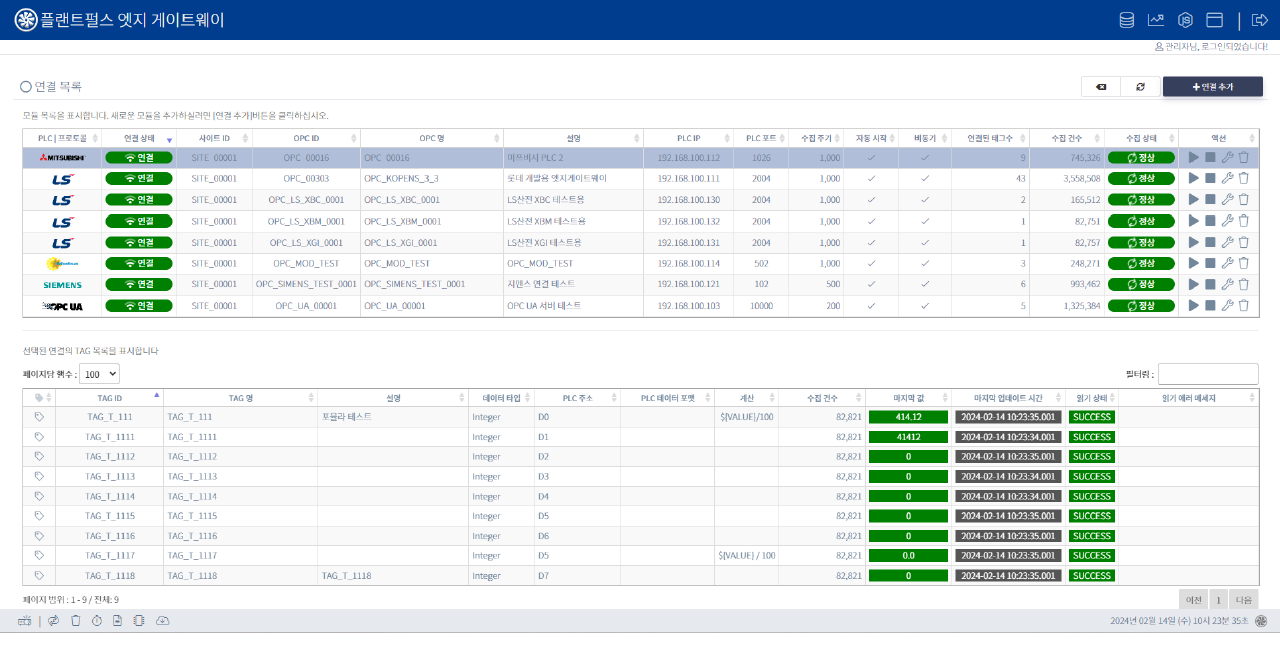 엣지게이트웨이는 산업 IoT 플랫폼는 웹 환경에서 OPC/PLC/Modbus 등의 산업용 프로토콜에
